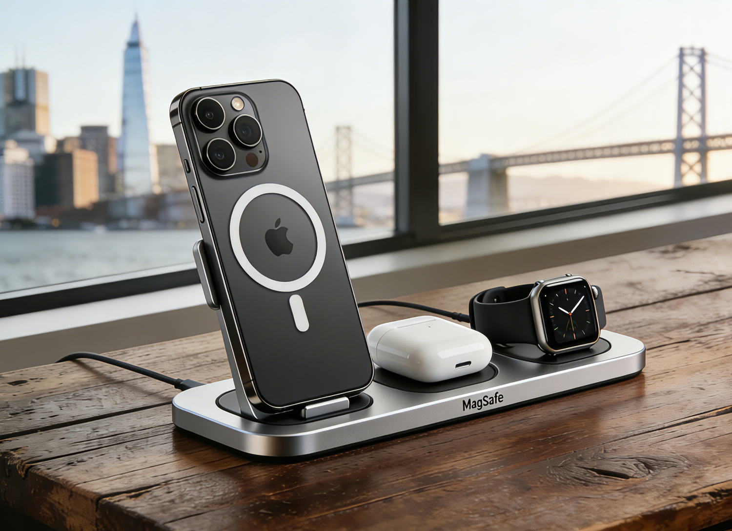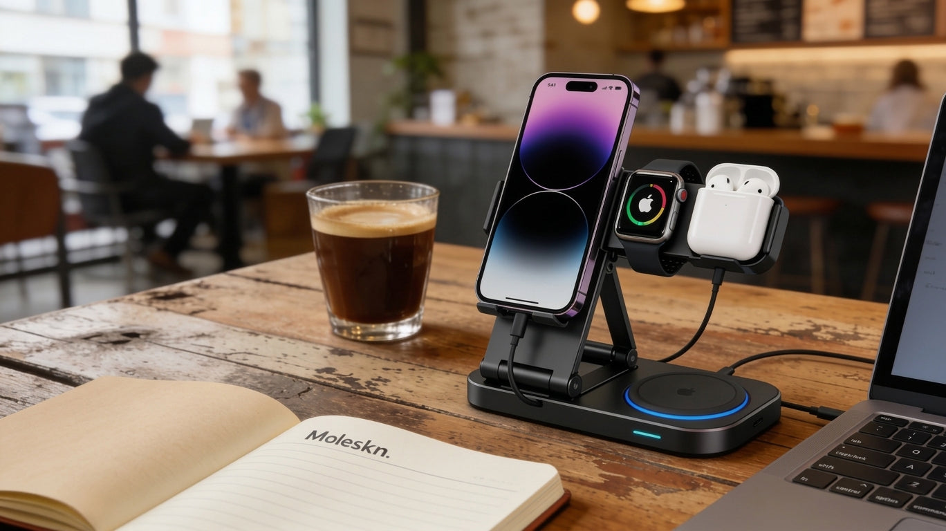 Elevate your setup with premium MagSafe-compatible stands and 3-in-1 charging stations. Designed for iPhone 16/15 series.