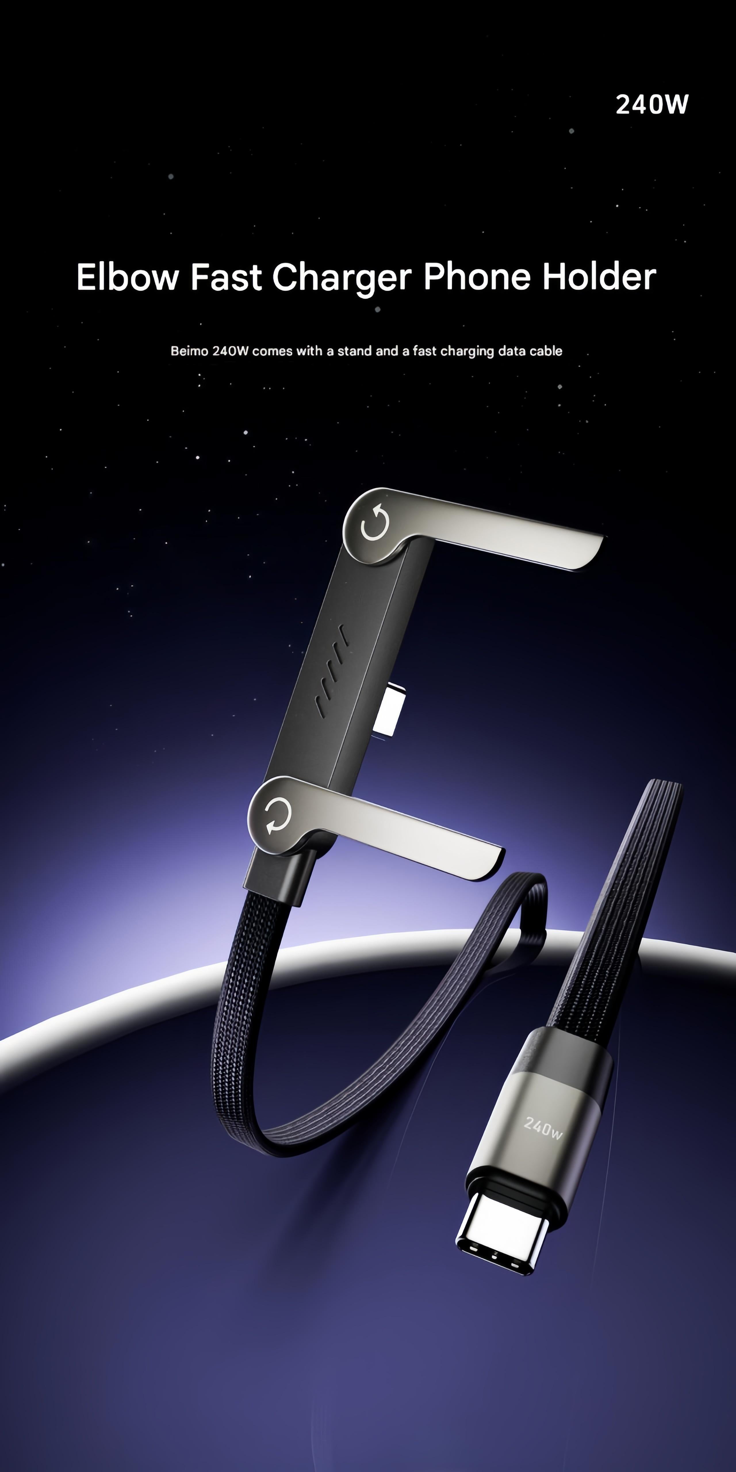 240W USB-C Fast Charging Cable with Built-in Foldable Stand | Universal High-Speed Power Cord for iPhone & Android