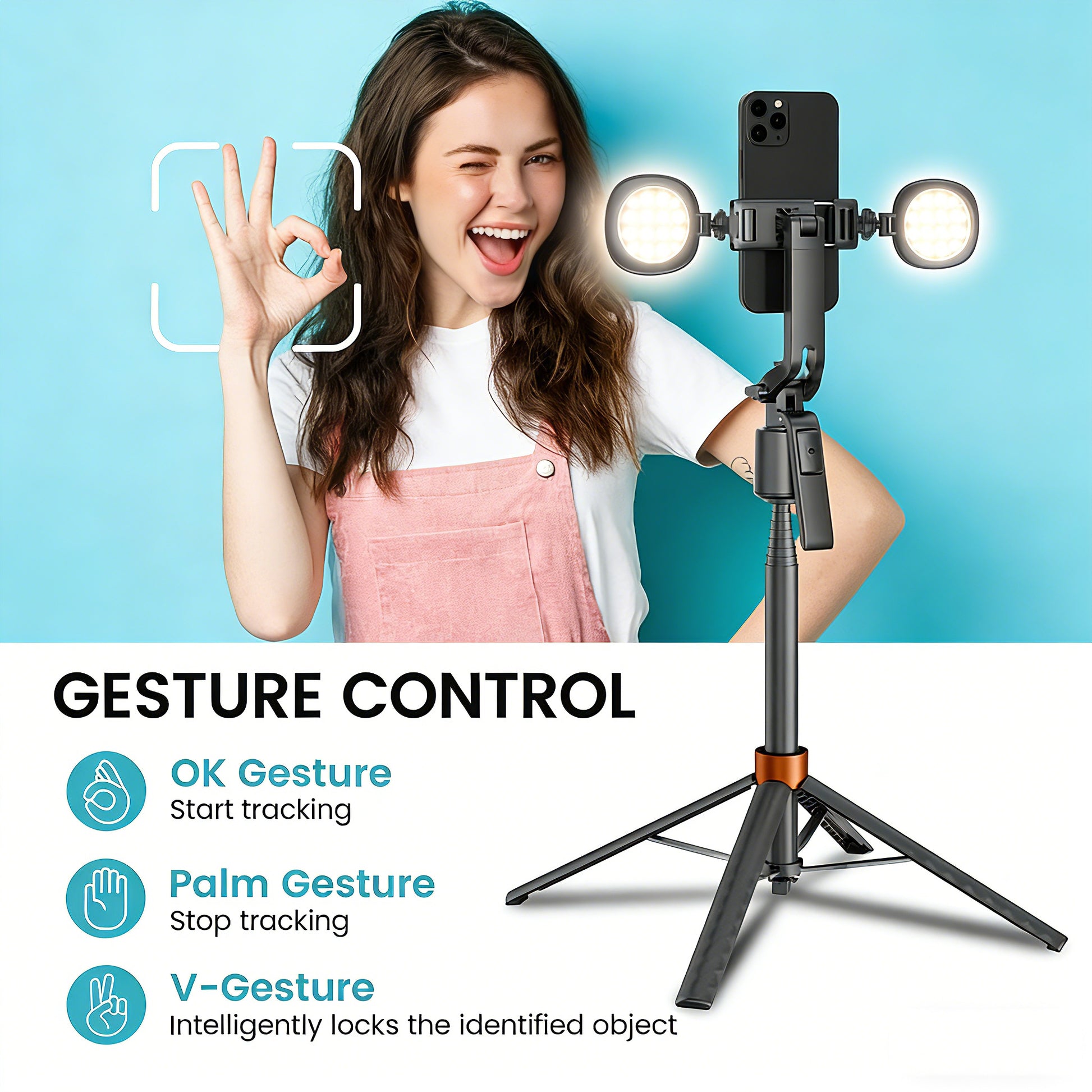 Gesture Control Technology: Take full command from a distance. Use simple hand gestures to start or pause the tracking—ideal for solo filming when you’re away from the screen.