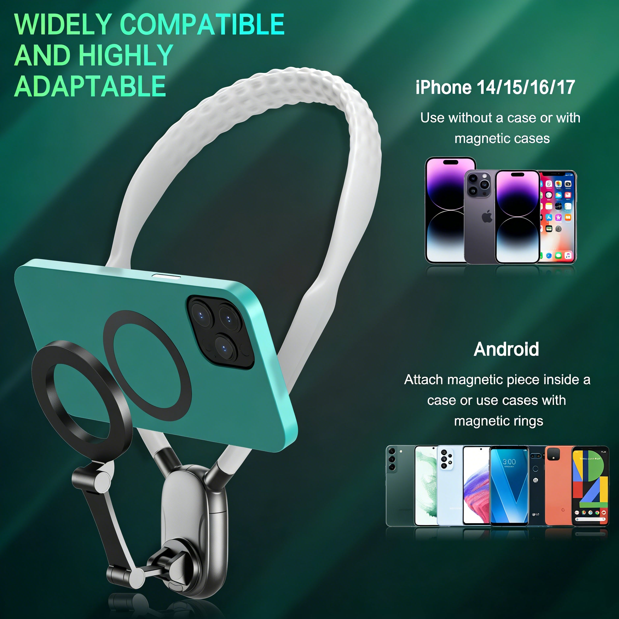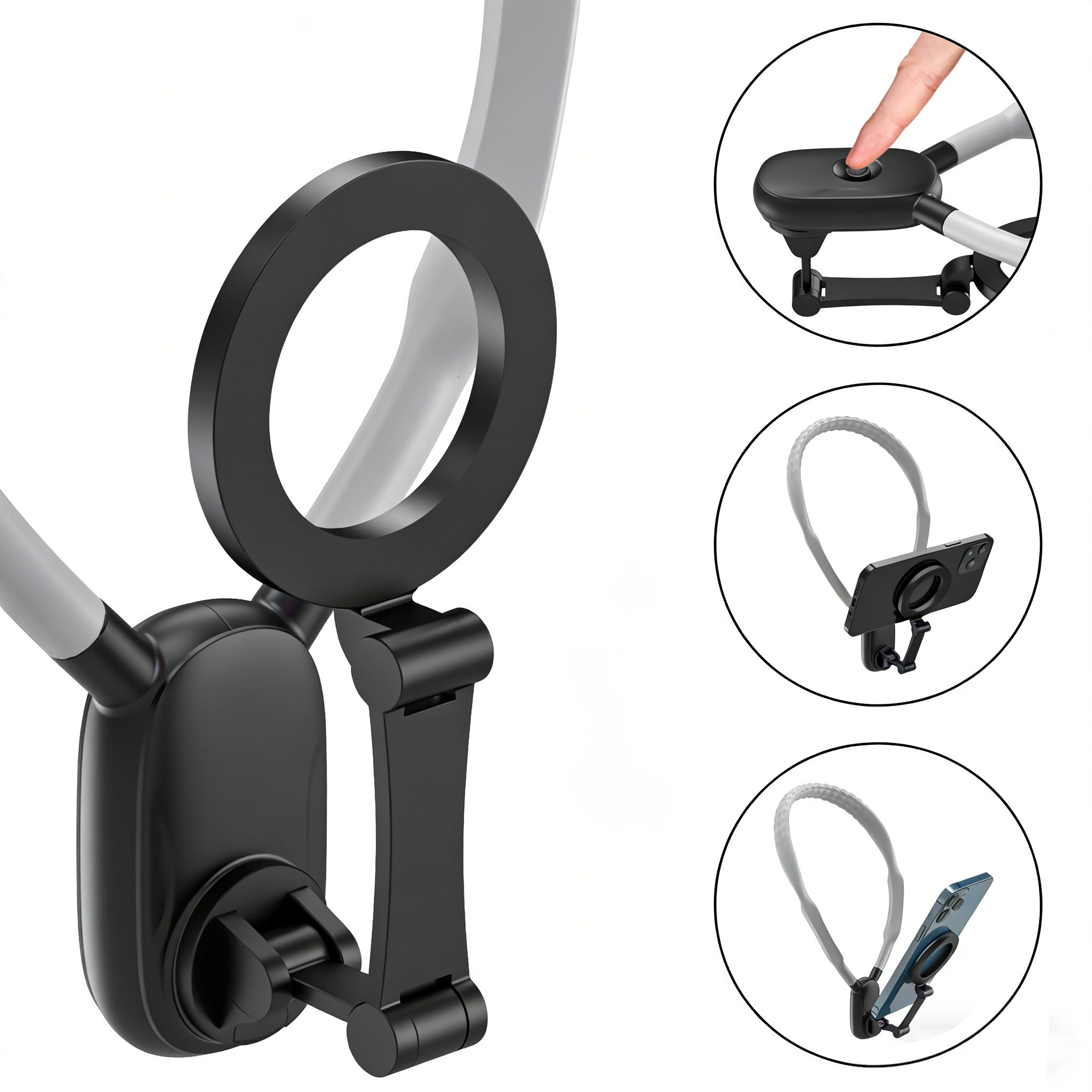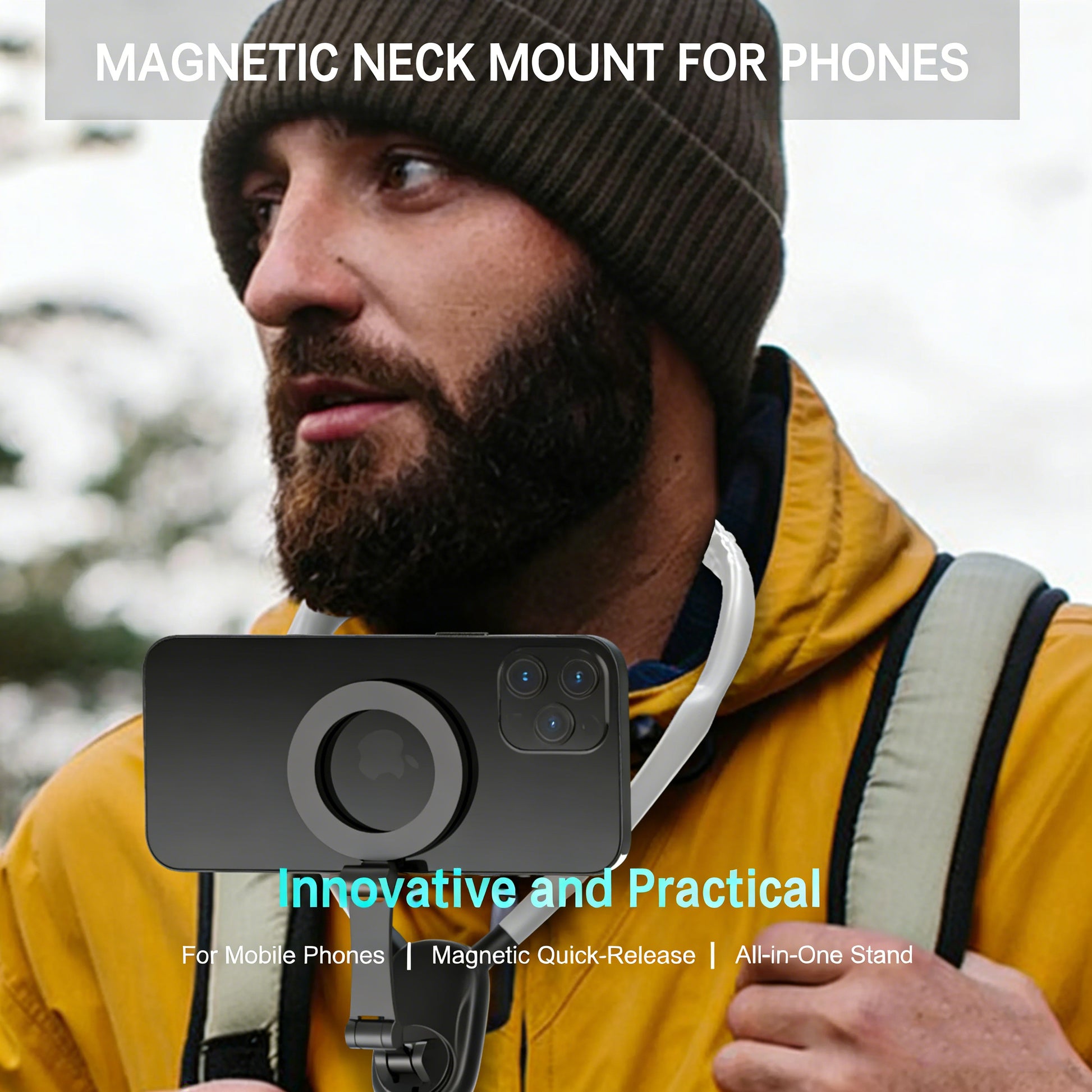 Magnetic Neck Mount for iPhone 16/15 & Android | Hands-Free POV Vlog Holder for Action Video & Cooking