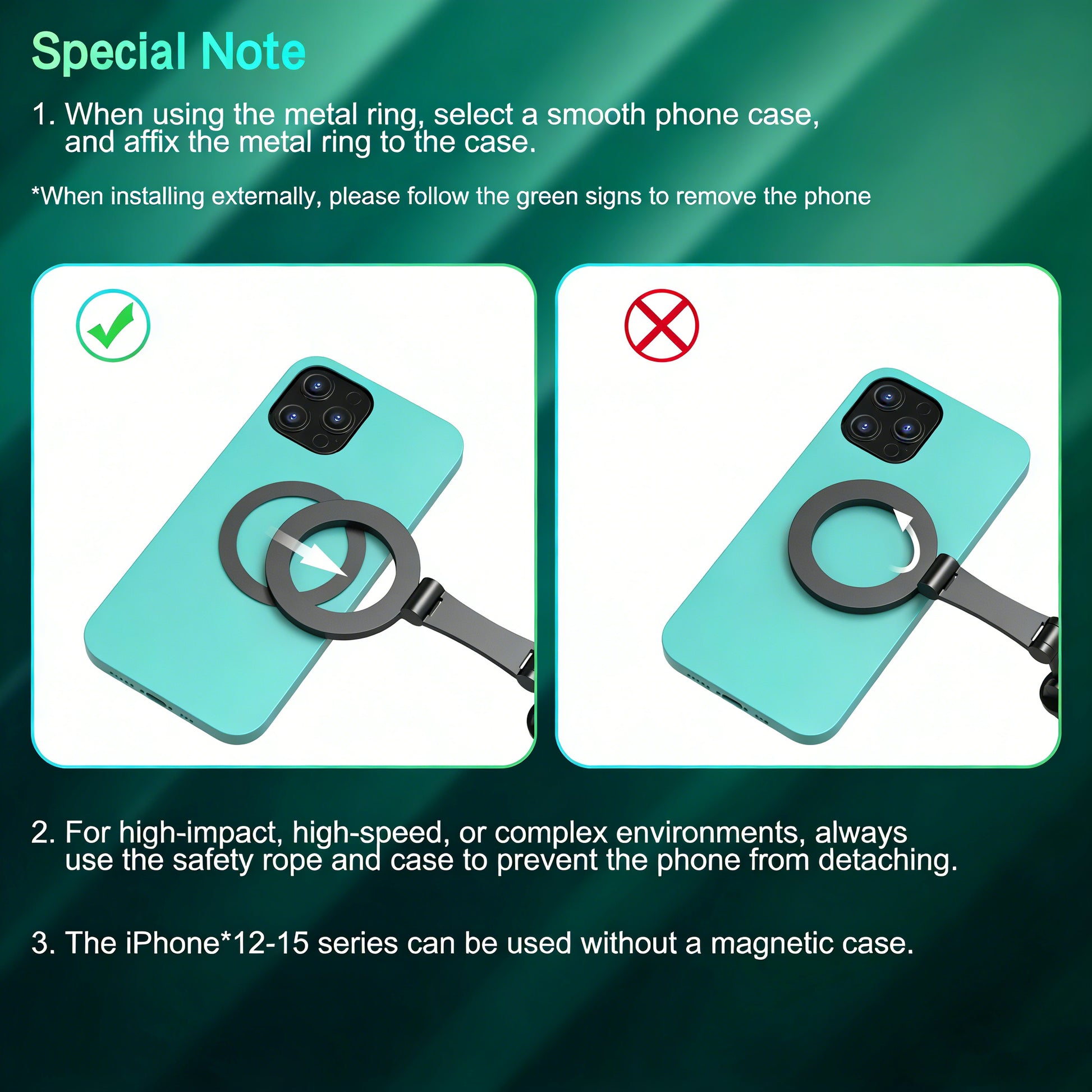 Snap-to-Go Magnetic Tech: Featuring powerful N52 industrial-strength magnets, it locks your iPhone 16/15 or MagSafe case in place instantly. Using a non-MagSafe phone? We’ve included a Universal Magnetic Ring to make any device compatible.