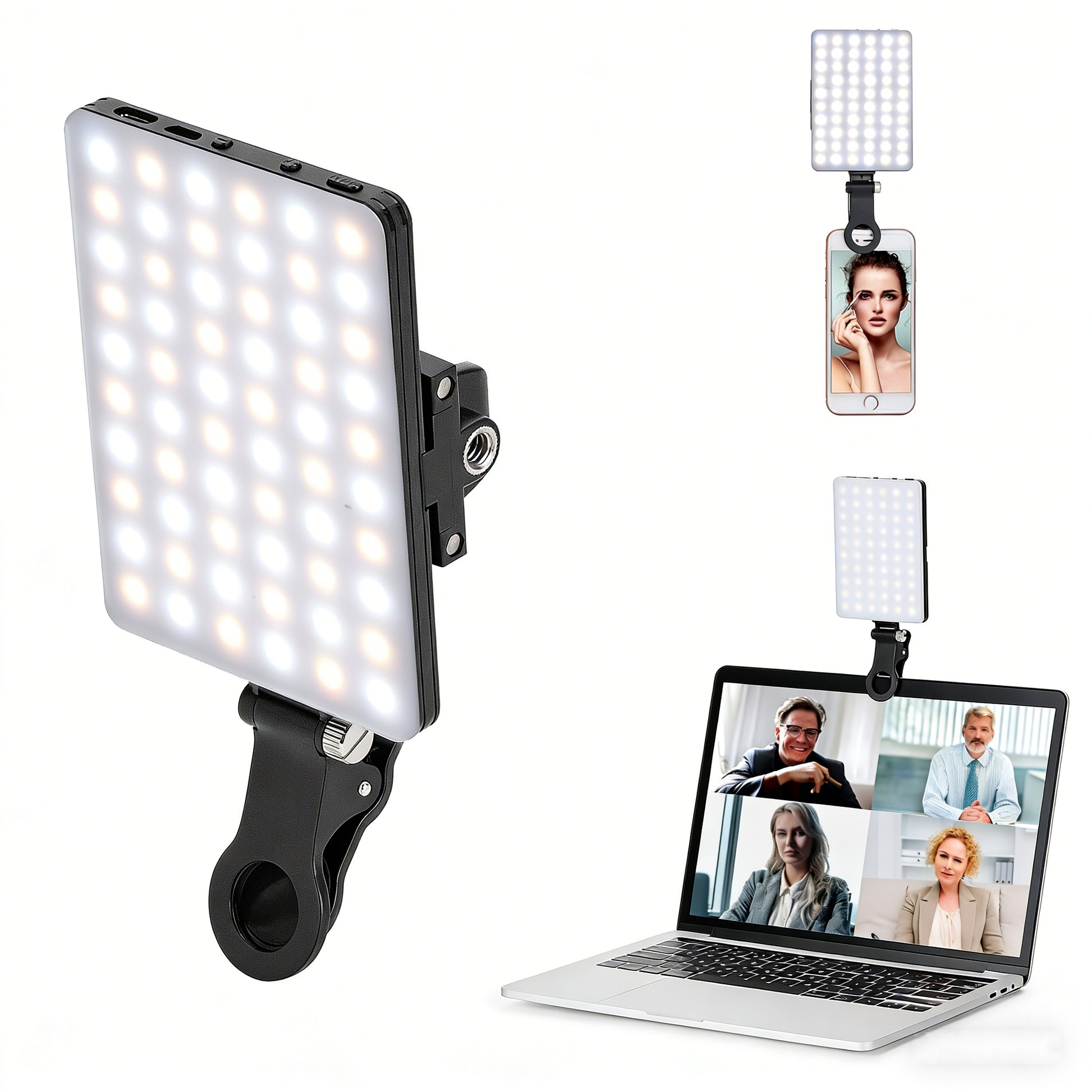 Universal Clip-On LED Selfie Light | Rechargeable Portable Video Light for Phone, Laptop & Camera with 3 Lighting Modes